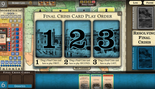 The country is on the verge of being torn apart so how will you act? Fort Sumter: The Secession Crisis is set during the events that led to the bombardment of Fort Sumter and the start of the American Civil War. The game takes the side of either a Unionist or Secessionist who must work to preserve the Union or follow the path to dissolve it. Each player uses an area control mechanic to place, move, and remove political capital. The location of political capital determines who controls each of the four crisis dimensions - Political, Secession, Public Opinion, and Armaments. After three rounds of play, the game culminates in a Final Crisis confrontation.